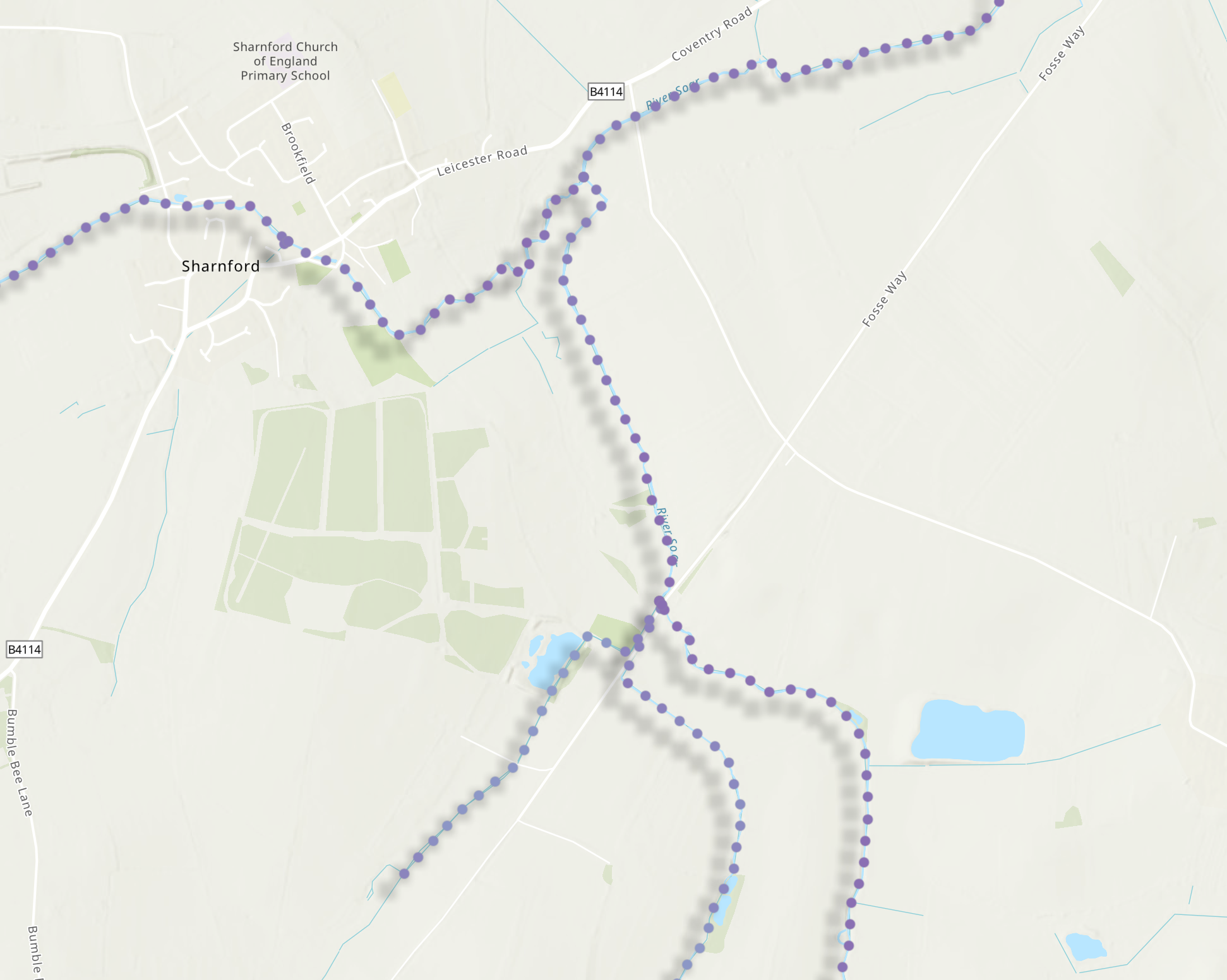 The model was run at a 50 metre resolution across the English and Welsh river networks, meaning there is a dot every 50 metres along every river, allocated with a specific set of values. In the Riverfly database, when a site is registered, it pulls the Modelled Target Score and Modelled Trigger Level from the dot nearest to the site’s location on this hidden layer.