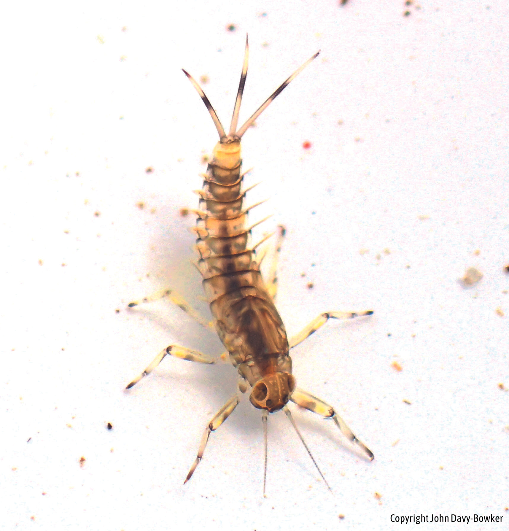 Volunteers taking part in the Riverfly Monitoring Initiative collect samples of freshwater invertebrates and record the numbers of individuals found within eight easily identifiable groups. Four of these groups are the larvae of Ephemeroptera families: Ephemeridae (‘true’ mayflies), Ephemerellidae (blue-winged olives), Heptageniidae (flat-bodied stone clingers), and Baetidae (olives).