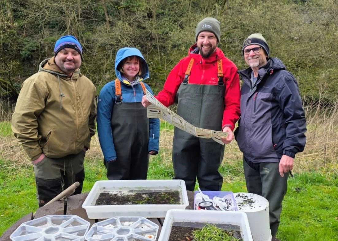 L-R: Riverfly Partnership Co-chair Simon Johnson, Co-ordinator Ellen Burton, Senior Development Manager Henry Marriner, Co-chair Steve Brooks