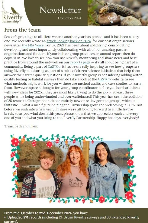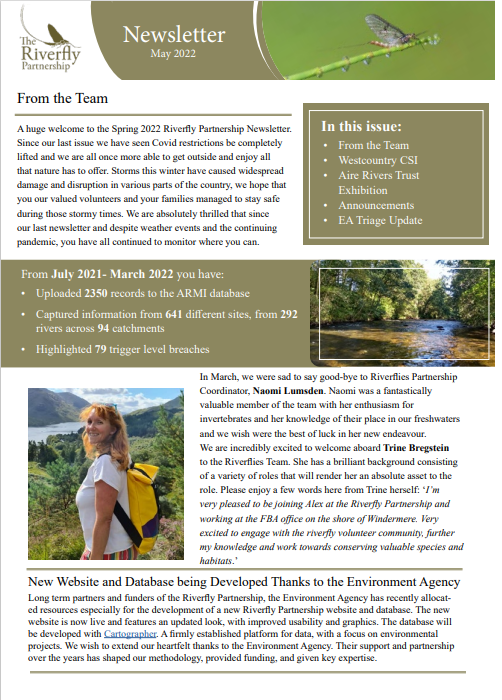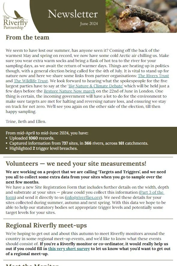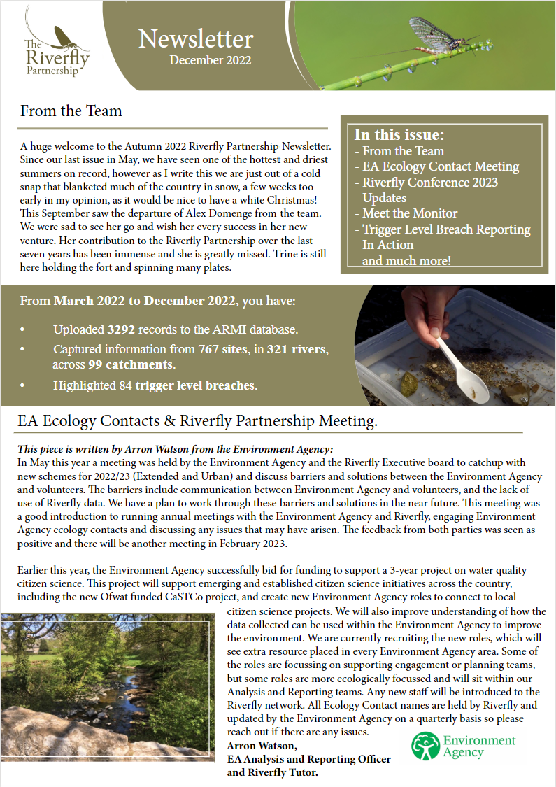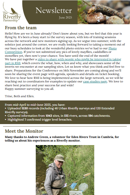 Please note that our newsletter sign-up is through Mailchimp. Your email address will be only used by the Riverfly Partnership for our newsletter.